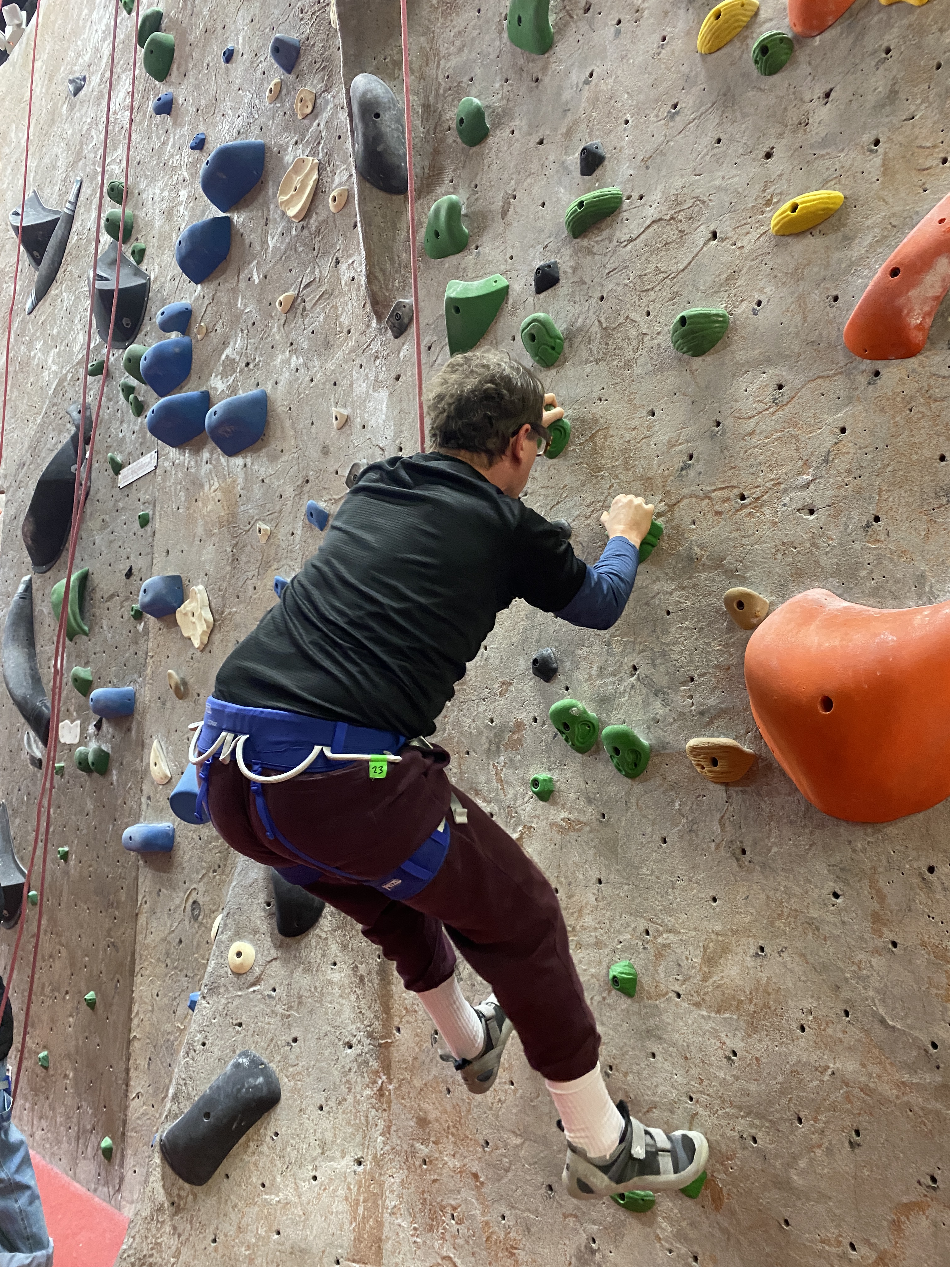 Hello all of you & good morning! Last week on Saint Patrick’s Day, Elise & I went to the Edgeworks Climbing Gym that is in Ballard. We went there because I am getting the opportunity to participate in an Adaptive Climbing Night, which is a fantastic way to get back into climbing indoor walls. I have already done this climbing exercise on February 17th & March 17th. I definitely plan on doing this again in April, and I am excited at how challenging it is to accomplish it. It is great that the climb requires the selection of the same color of rock wall climbing holds that goes up the wall. The climb also gives me the need to decide if I am going to emphasis using my arms or my legs to climb effectively.