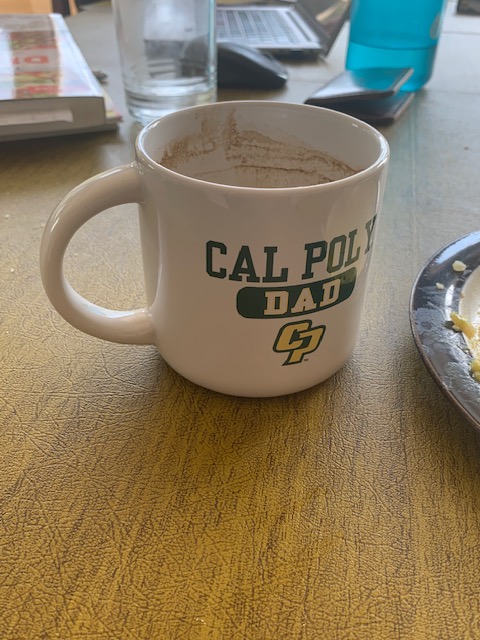 Hello & good morning all of you. It is fantastic that Ella has chosen to attend the California Polytechnic State University for her undergrad college education! As all of you can see, I have an outstanding new coffee mug that communicates that I am now an official “Cal Poly Dad”!